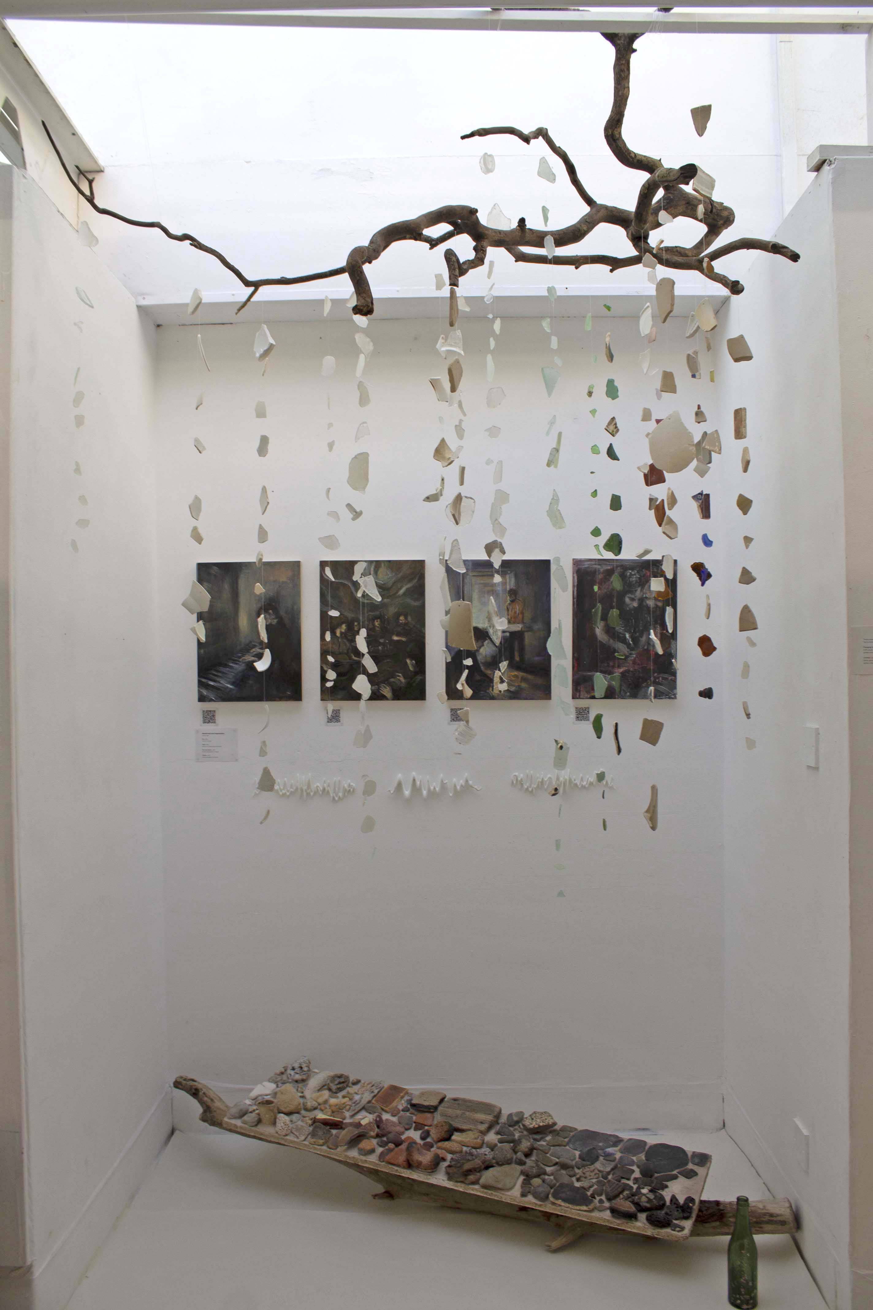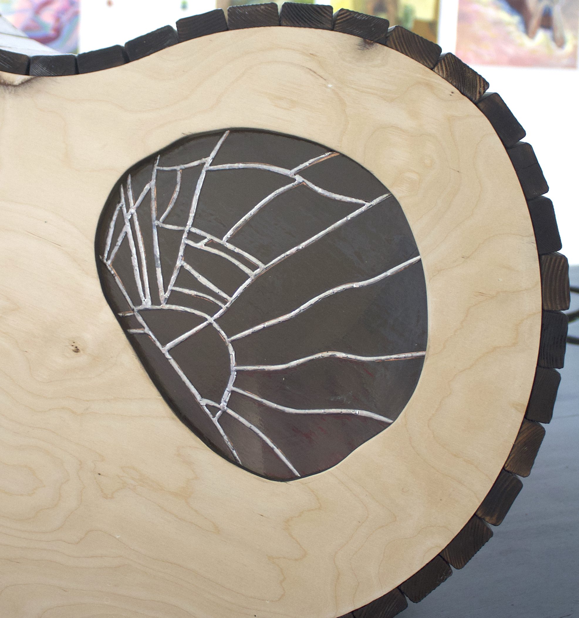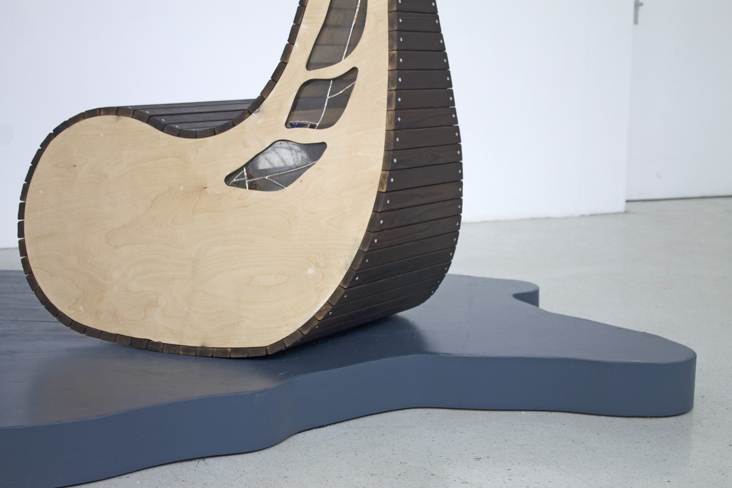 2024 Mix media installation: wood, stained glass, metal, and sound rocking chair.