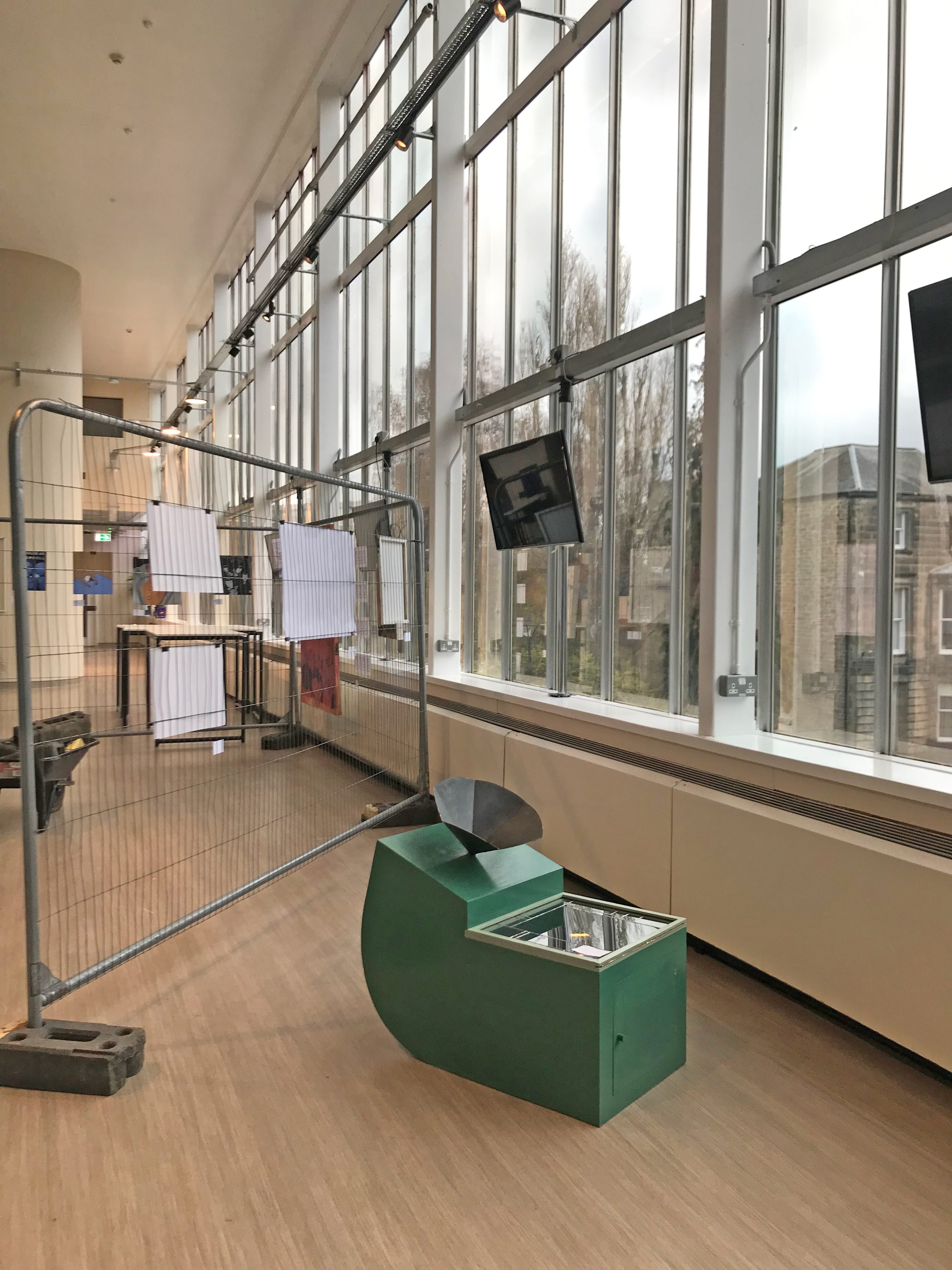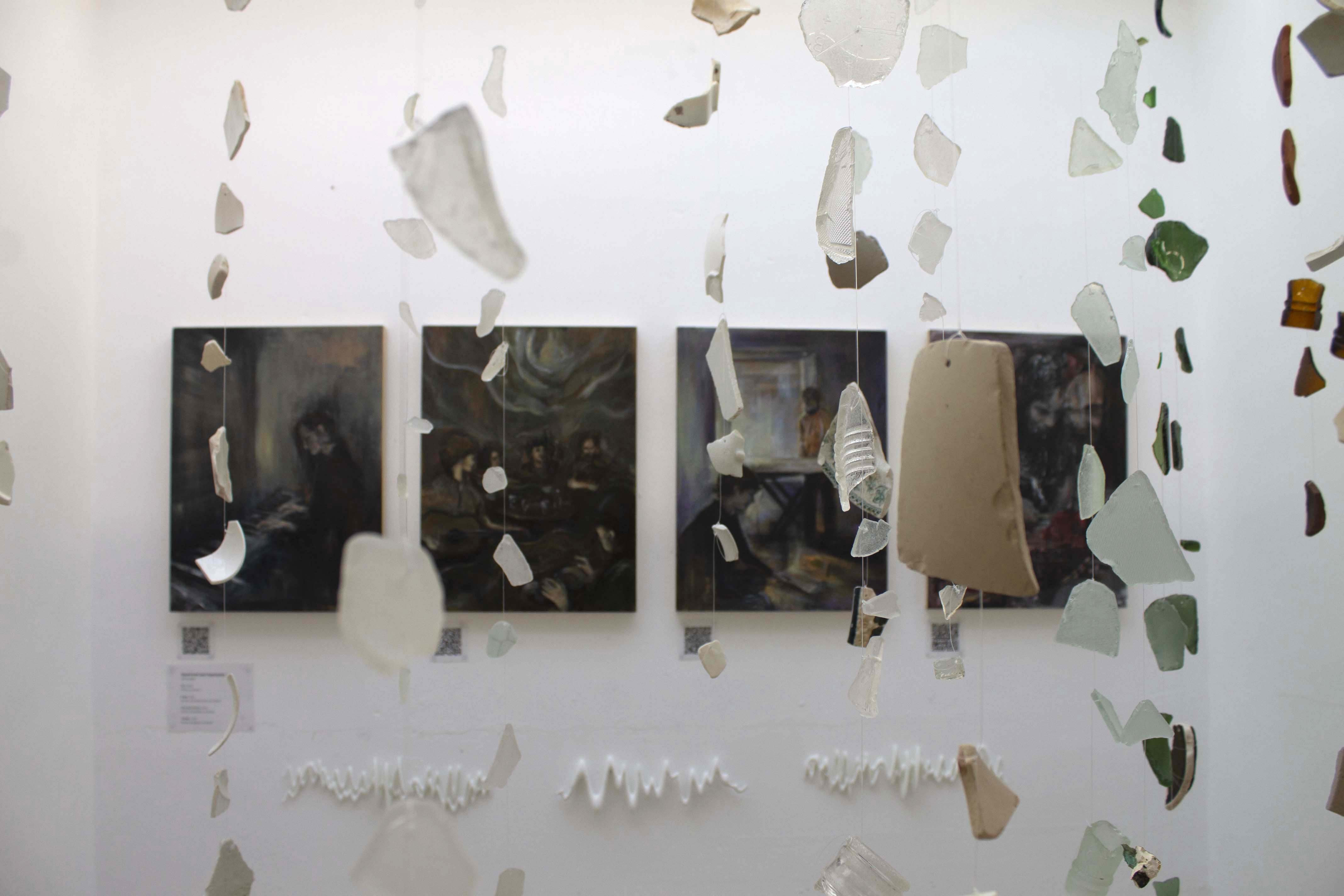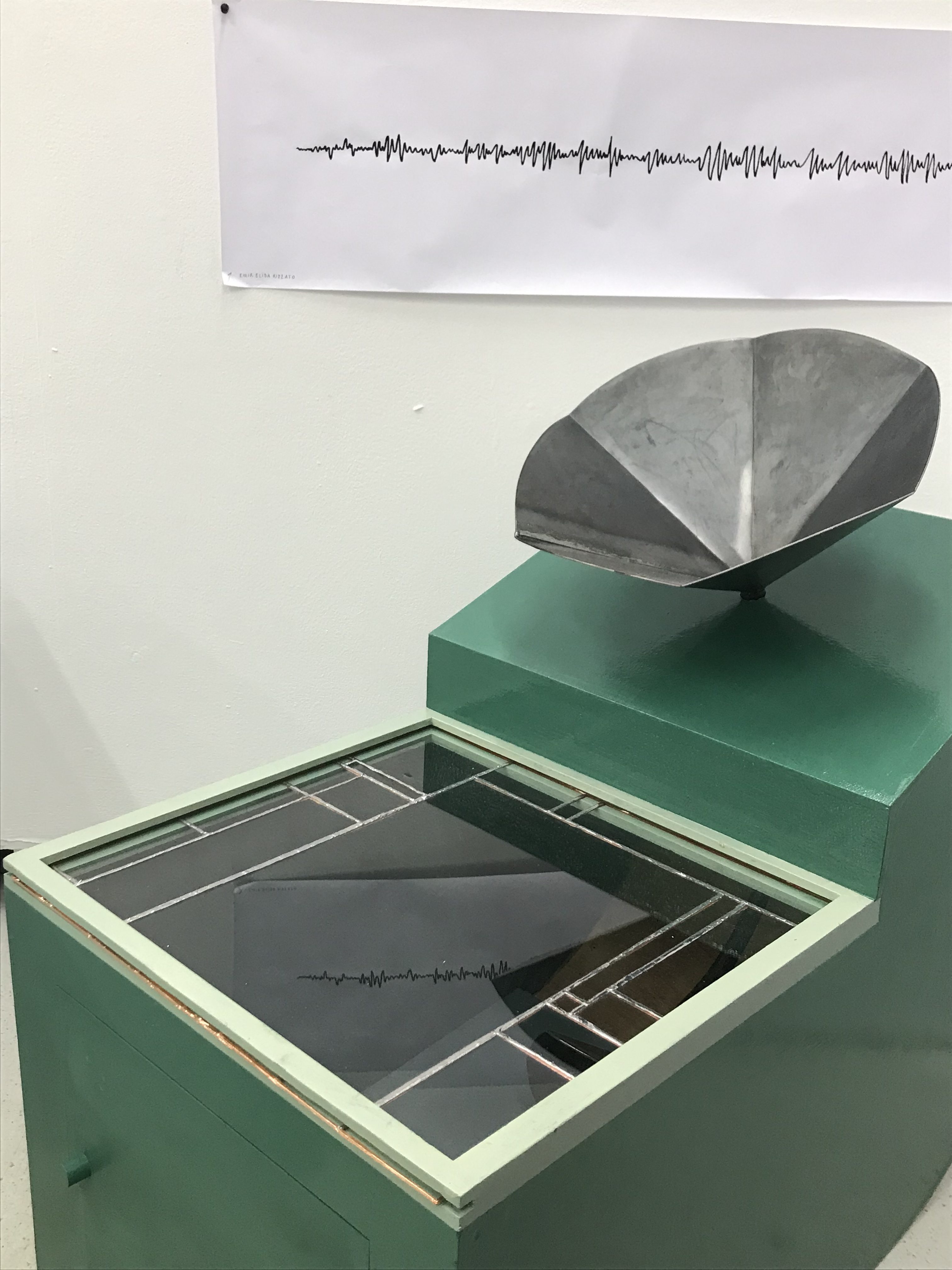 2024 Mix media installation: wood, stained glass, metal, and sound rocking chair.